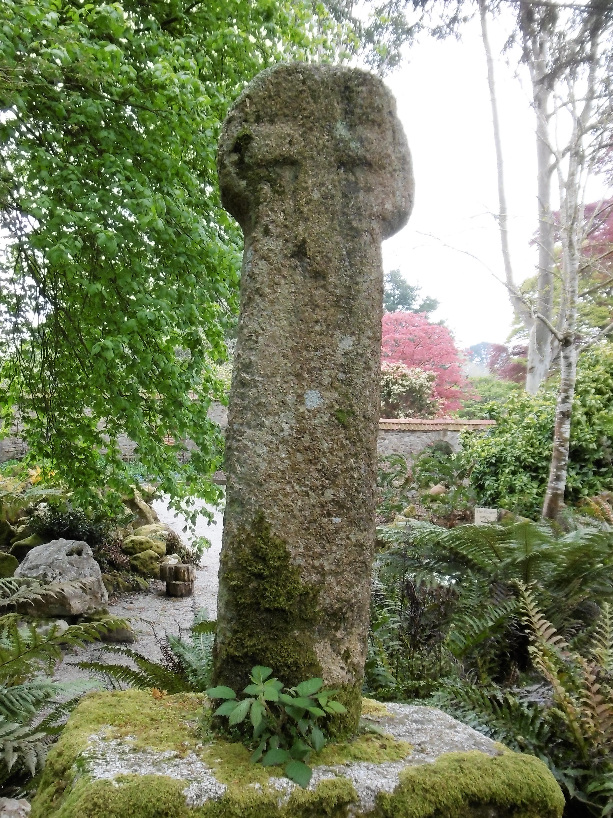 Ancient Celtic cross. The garden’s micro climate and mild temperature enable many tender plants and trees to flourish.