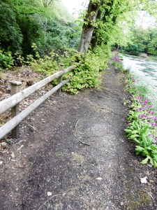 The girl smiled at Marty and then at me, making eye contact.  She struck me as a spirited Ann of Green Gables type. What made her smile? Was it her sight of us cautiously descending the incline? School done for the day? Praise for a poem she had written? Kicking the winning  goal in football?  The weather? Selection as May Day Princess? We’ll never know.  Whatever the prompt, her smile helped make our day.