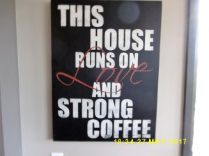 Thanks, John. We thought of you and Marty today when we went to Meijer Sculpture Gardens with Ginger’s son. It is a picture perfect today here in GR and we are enjoying the cooler weather after a lot of 90 degree days in Florida. Sounds like you enjoyed your time in Ontario with family and watching live theater. Sometimes those two things can merge! Your family birthday cake is lovely and I like the sentiment, “This house runs on Love and Strong Coffee”!