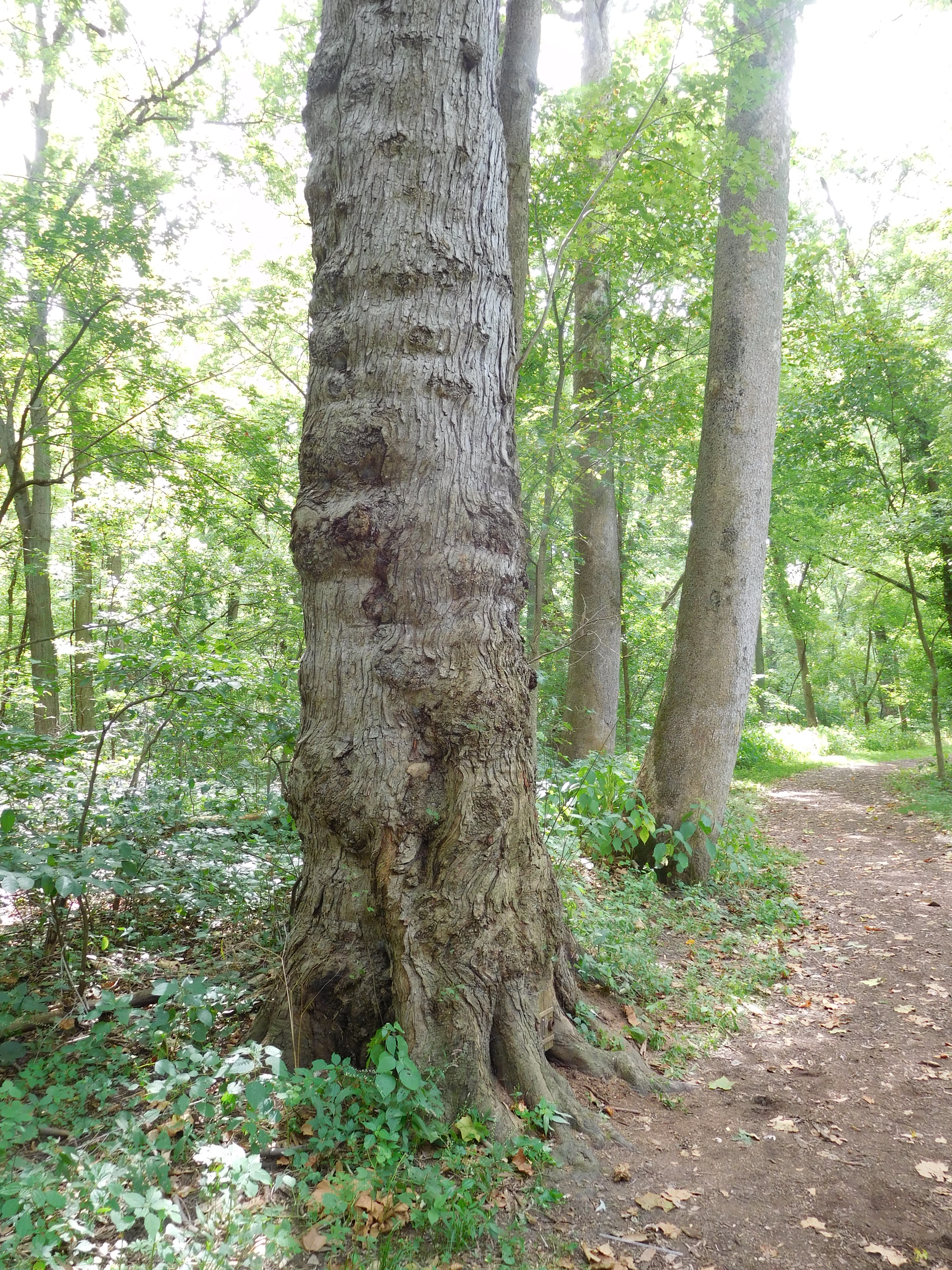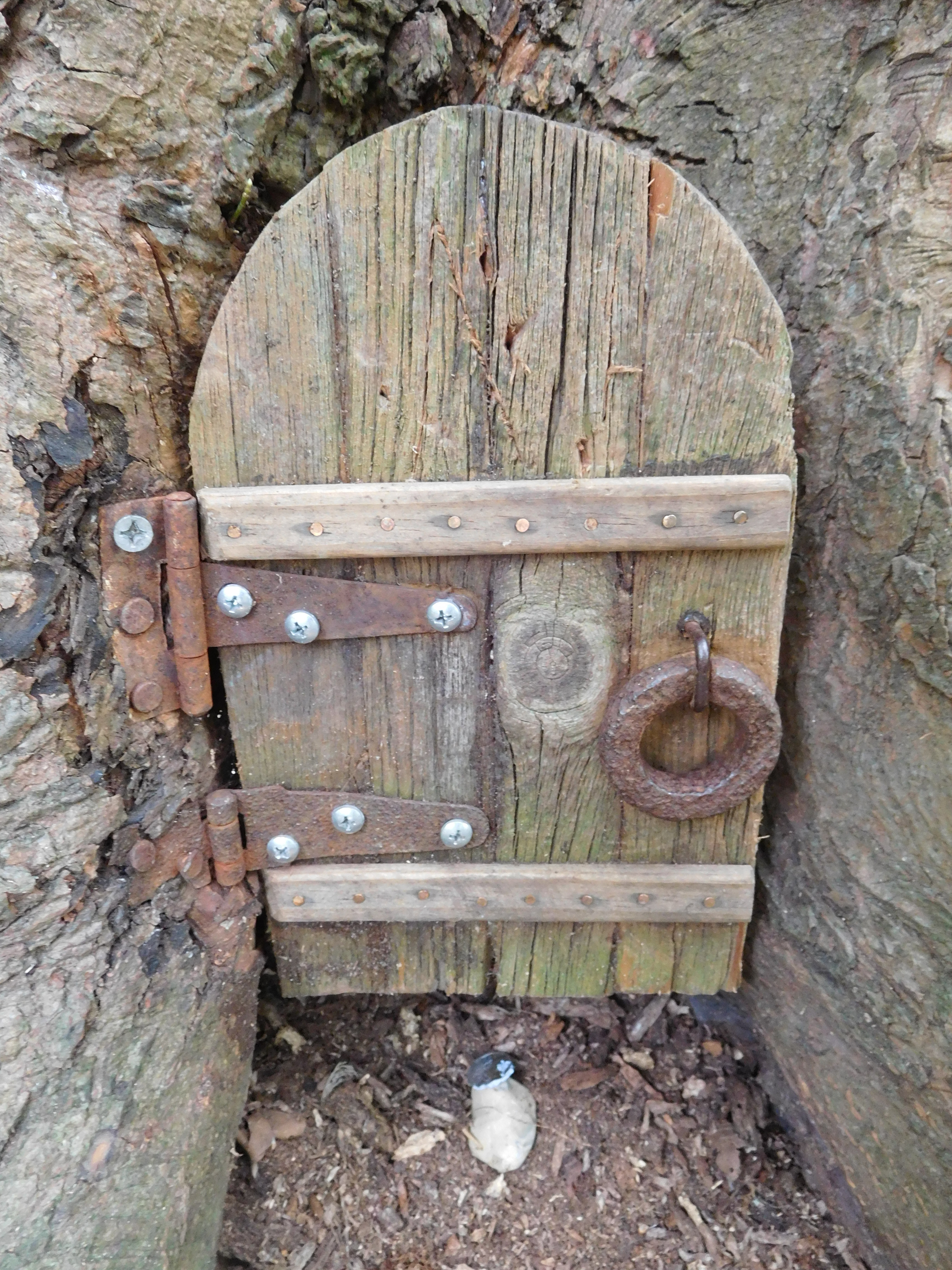 Door to a cavity in a tree on a path in Oxbow Park.