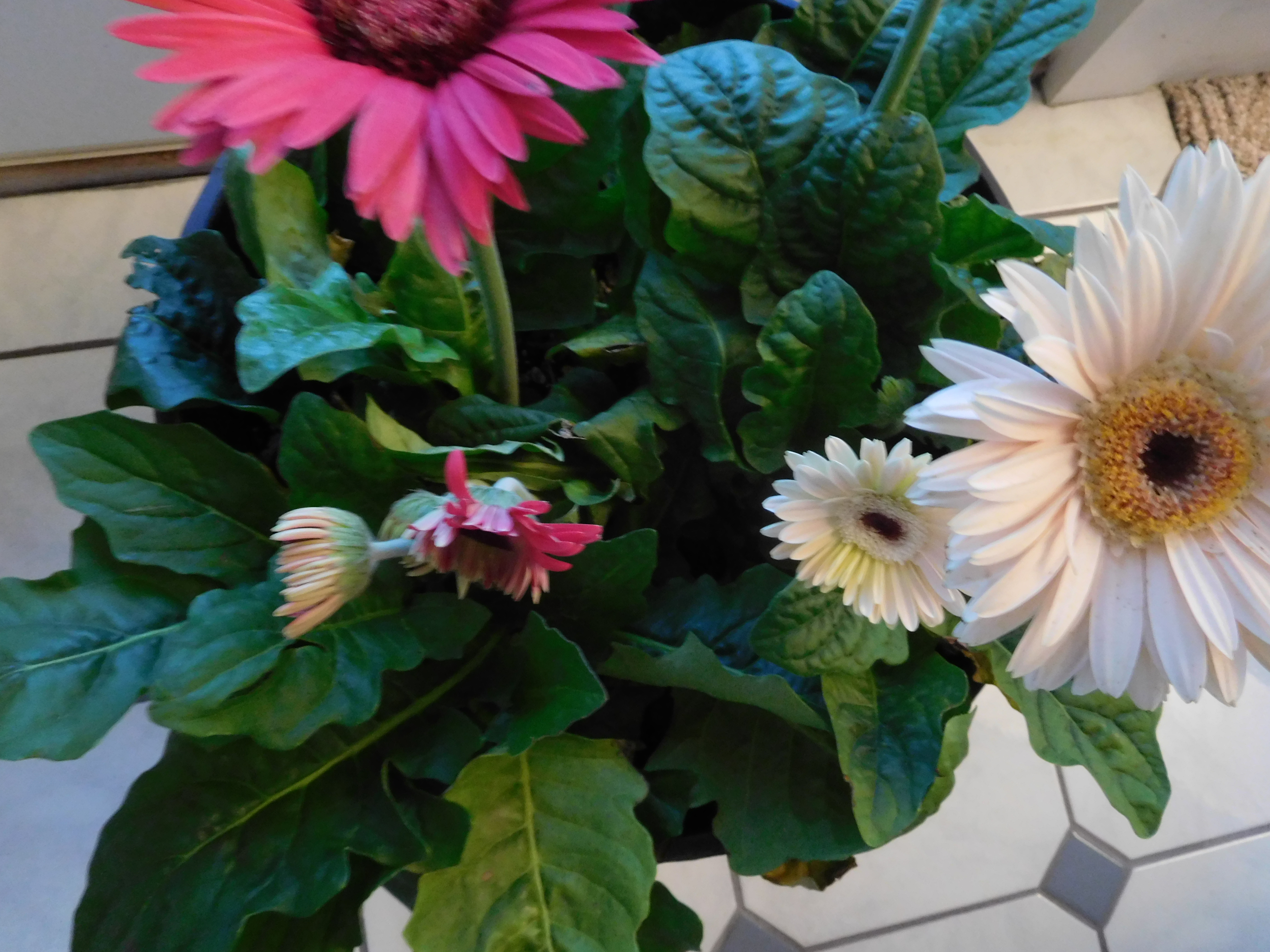 We moved our Gerbera daisies inside from our front step. Three new shoots have since appeared. Nice!