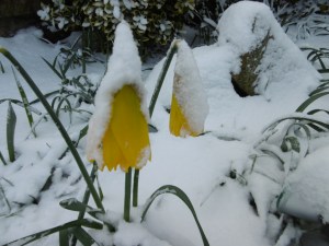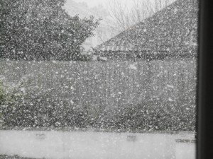 BBC presenters said to “Walk like a penguin” in the snowy and icy conditions. Take short steps, hold arms in an arc, swing your body slightly with each stride. Smile. We must have created quite a sight on Thursday as we walked to the Costcutter for newspapers and milk and a bit of fresh air. No traffic could deal with the ice and snow on our hilly streets. Children were sliding down the streets. Almost all melted by Friday morning.