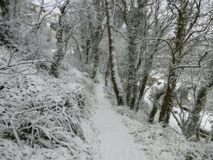 Featured image: Carbis Water, a stream in the valley, a five minute walk from our flat, flanked by the rarest of winter dress.