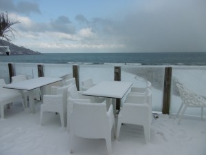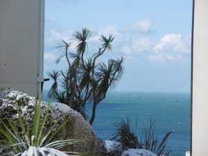 Wednesday noon brought snow, heavy snow, something almost never seen in coastal Cornwall. We walked the short distance to the Carbis Bay Hotel for a turn in the snow, pictures, and lunch.