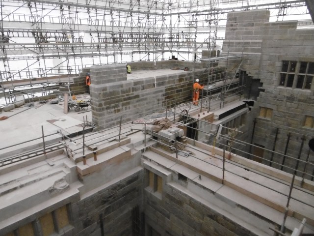 We took a hard hat guided tour to see the restoration work, that includes re-mortaring the granite building blocks and refitting all the windows.