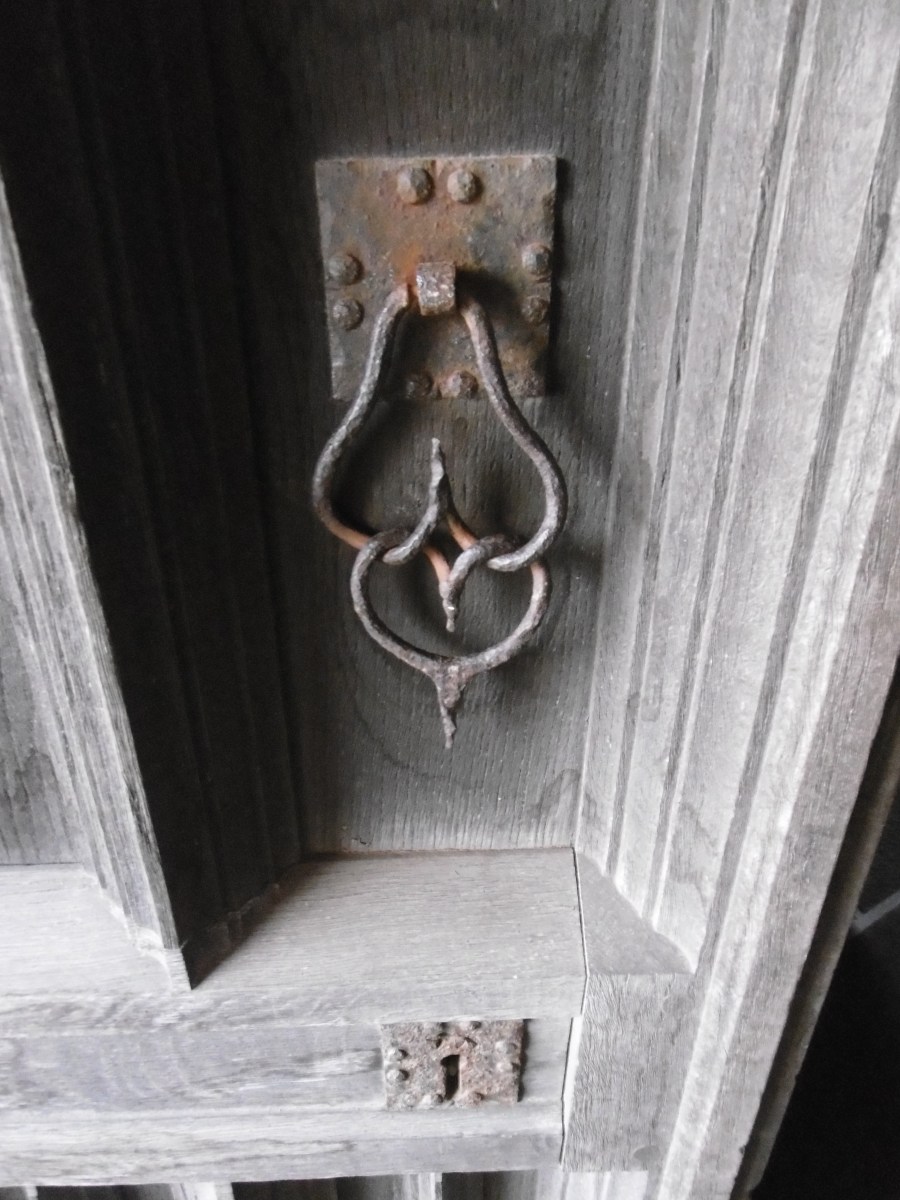 Featured image: Knocker and lock at the entrance to Castle Drogo.