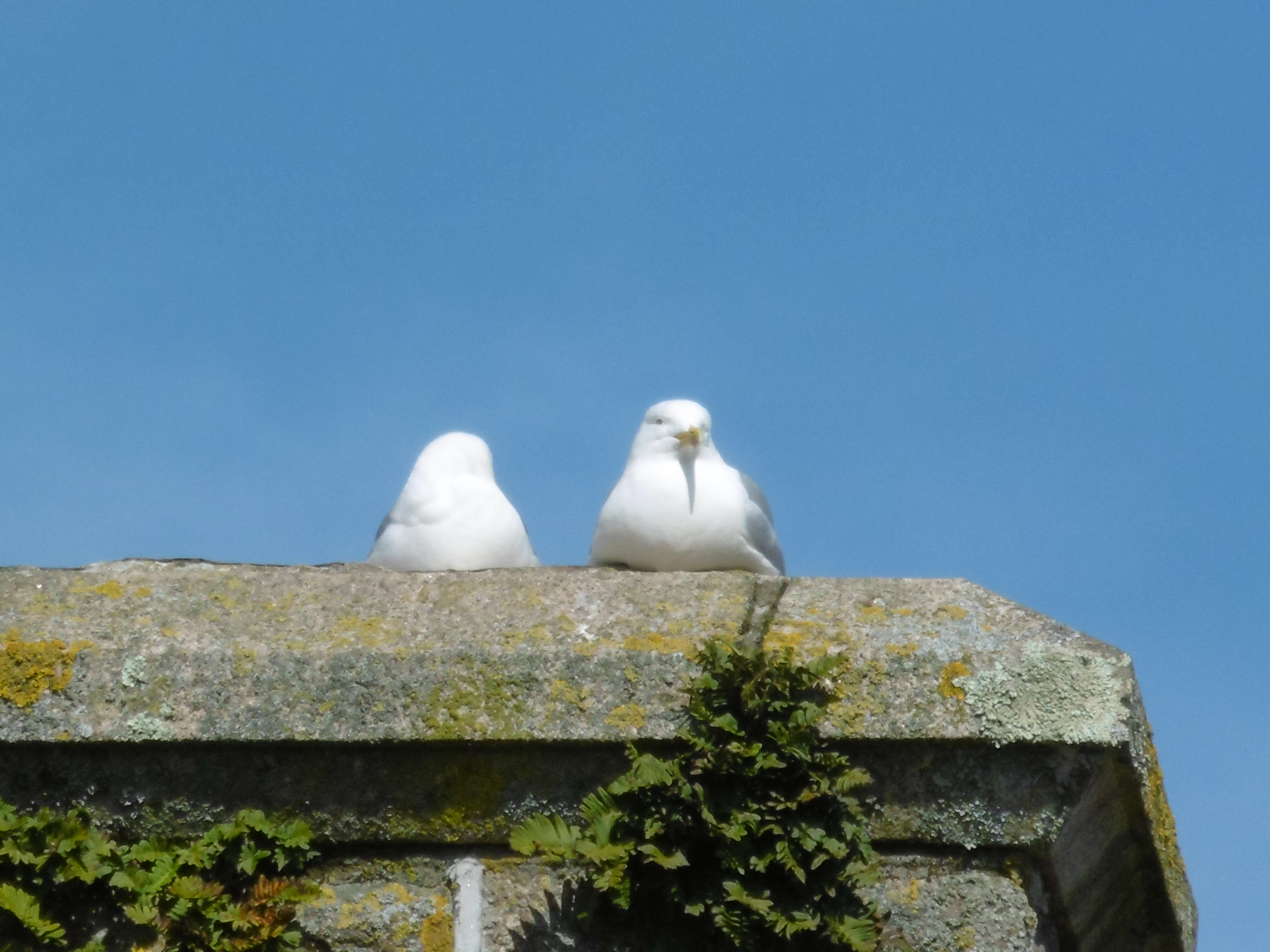 All-seeing gulls rest on the rail station chimney at St Erth.