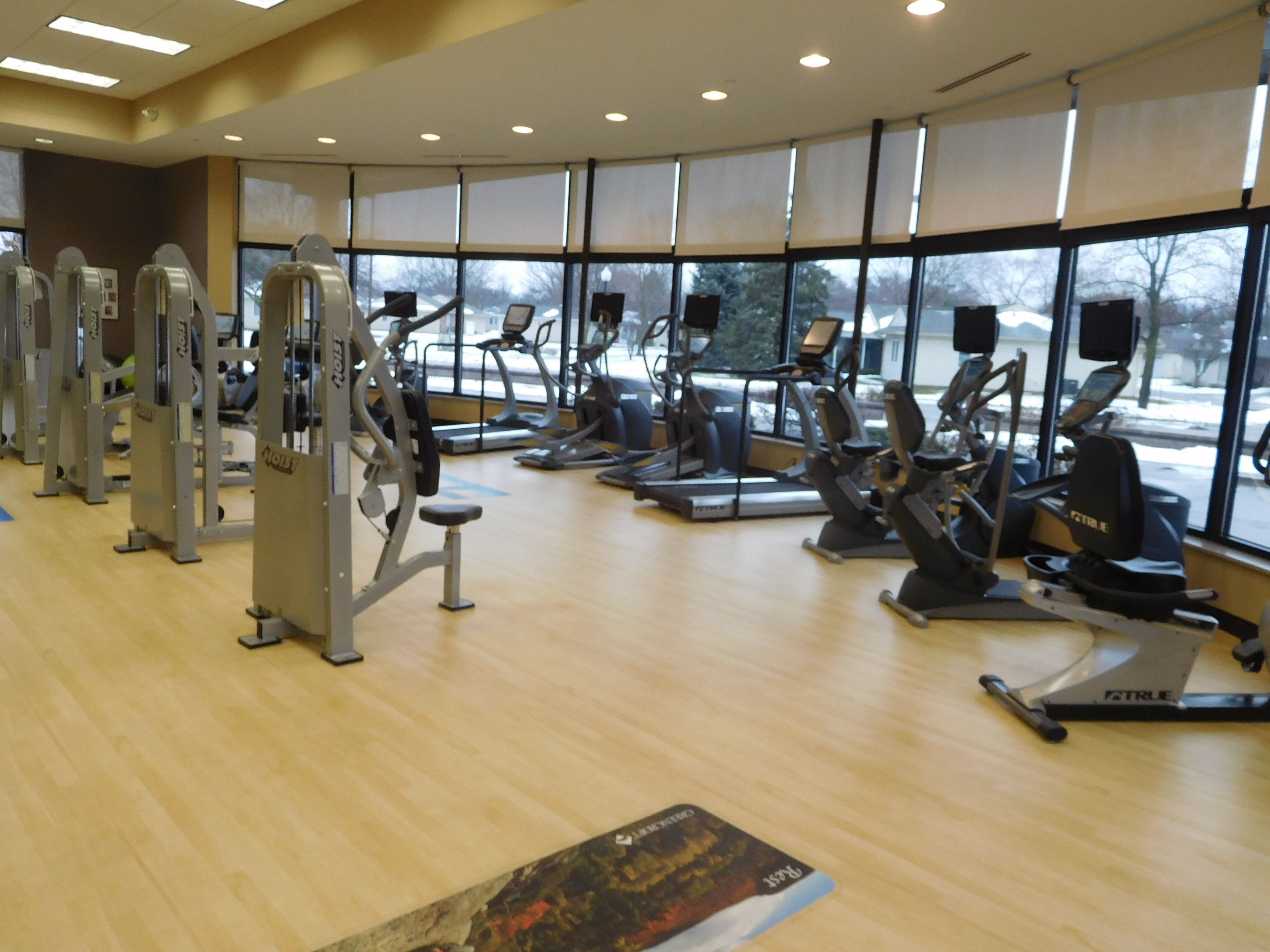 A trainer has developed a personal plan for each of us to properly use the strength training equipment and 11 pieces of cardio equipment in this spacious fitness room in the Greencroft Goshen Community Center. We already feel progress, especially with upper body strengthening.