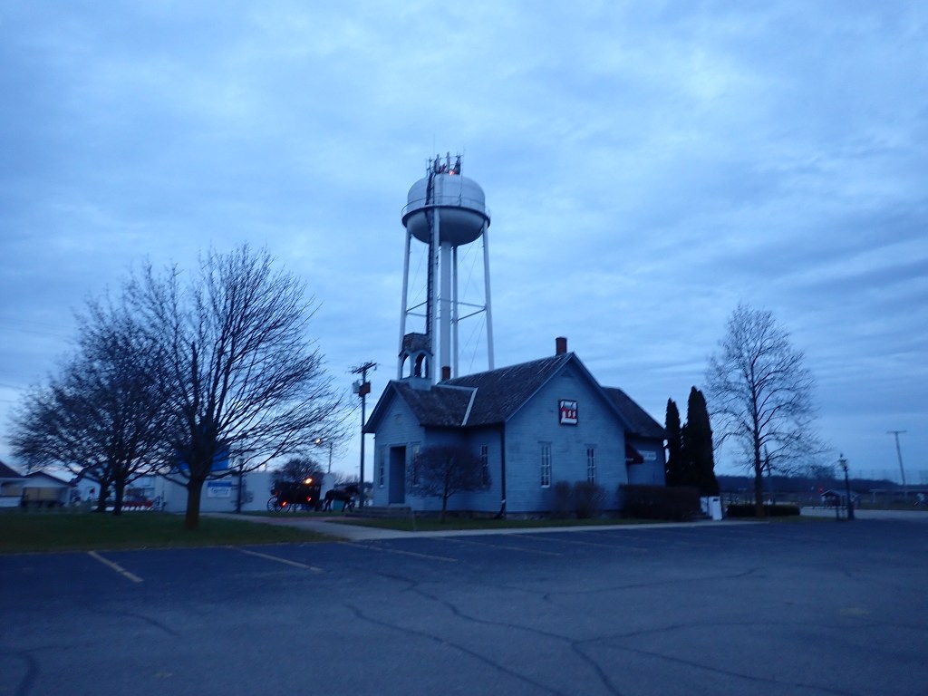We’ve left the four lanes of traffic at Three Rivers and keep heading south, soon to cross into Indiana. Now we’re turning onto State Road 120 and then take a local road around a detour of State Road 5. Even at 4:30, it’s getting dark.