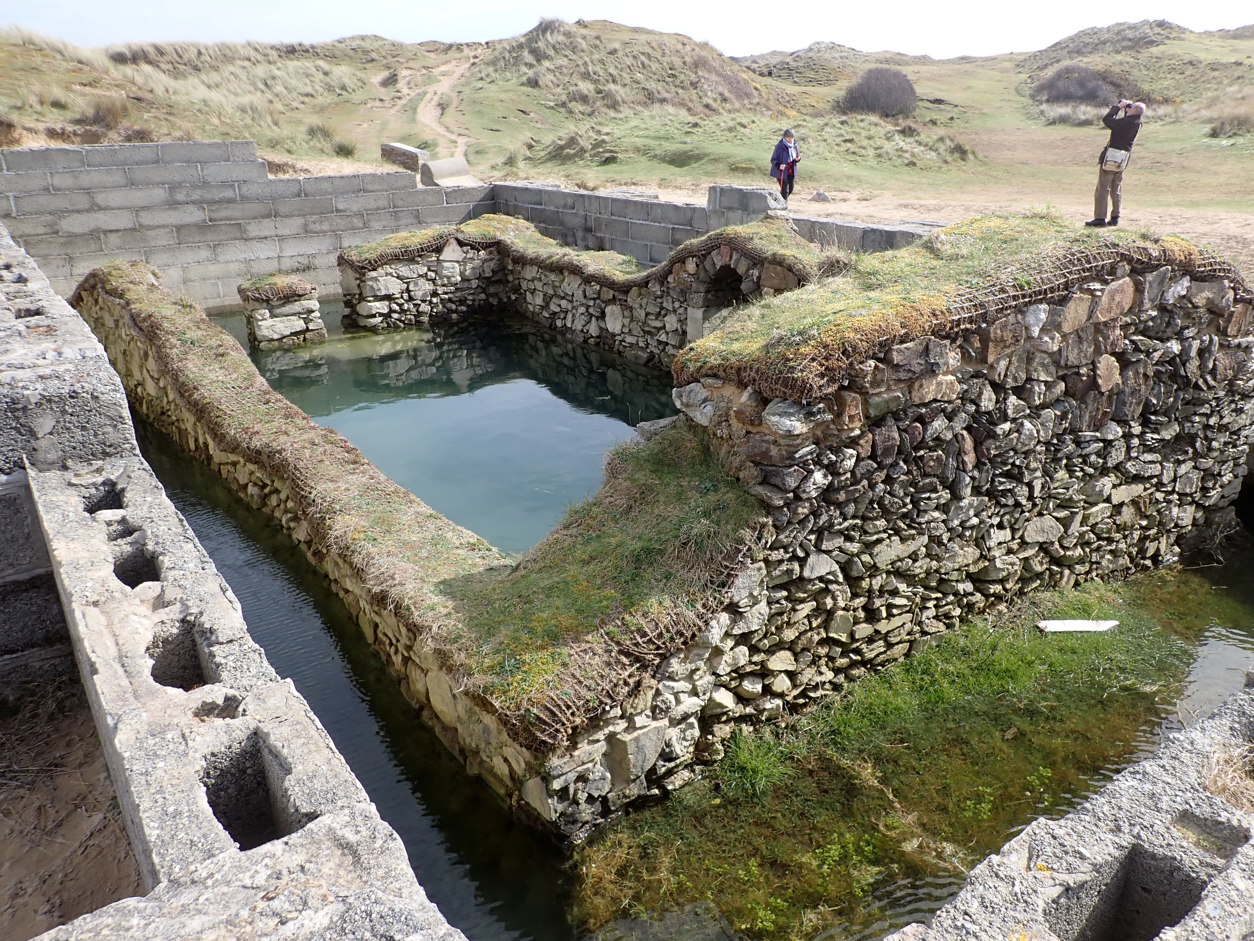 On Tuesday, Steve and Marilyn Bowden took us for a walk in Penhale Dunes, near Perranporth on the Atlantic coast, to see the remains of St Piran’s Oratory (reputably built in the 5th century) and the second Piran church (built in about 1100), both lost to the shifting sands of the dunes.