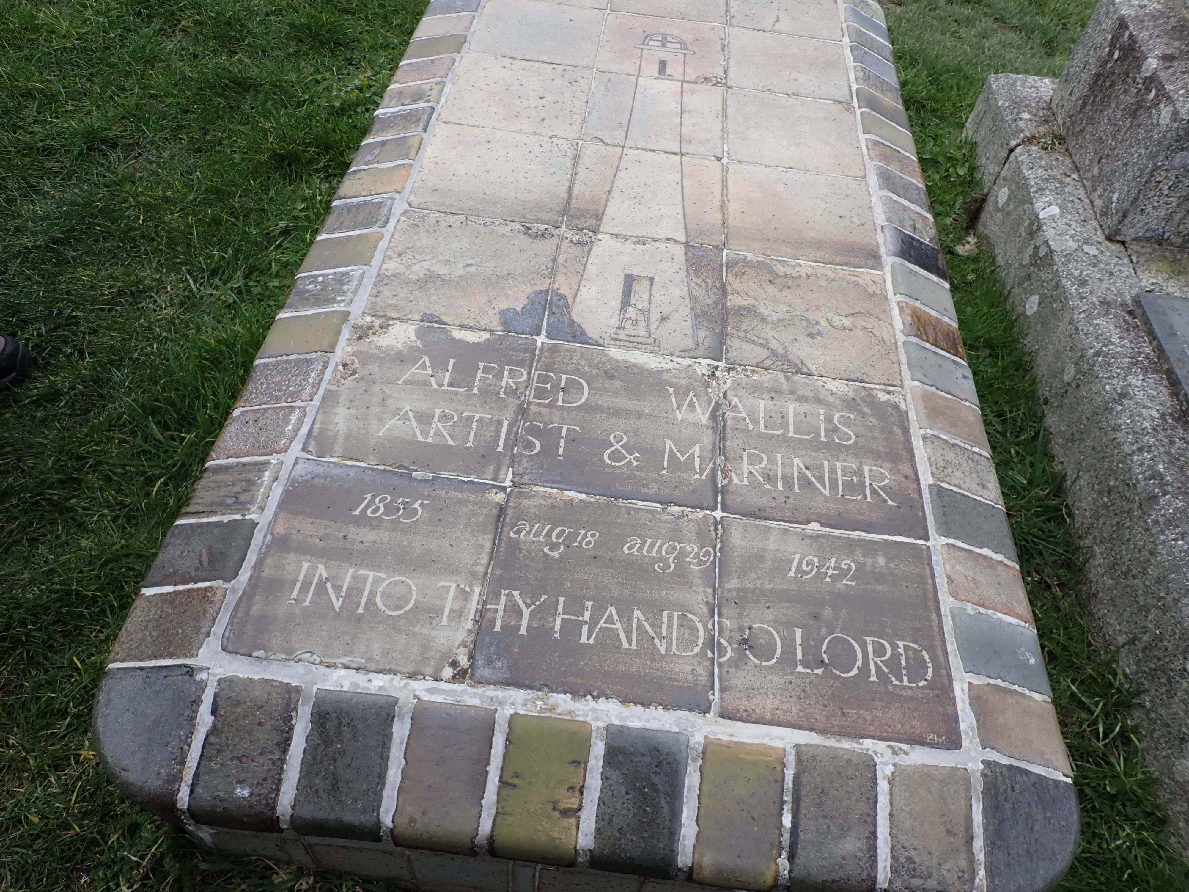 Alfred Wallis in late life became a folk artist in St Ives. Potter Bernard Leach created the tiles for Wallis’ burial plot.