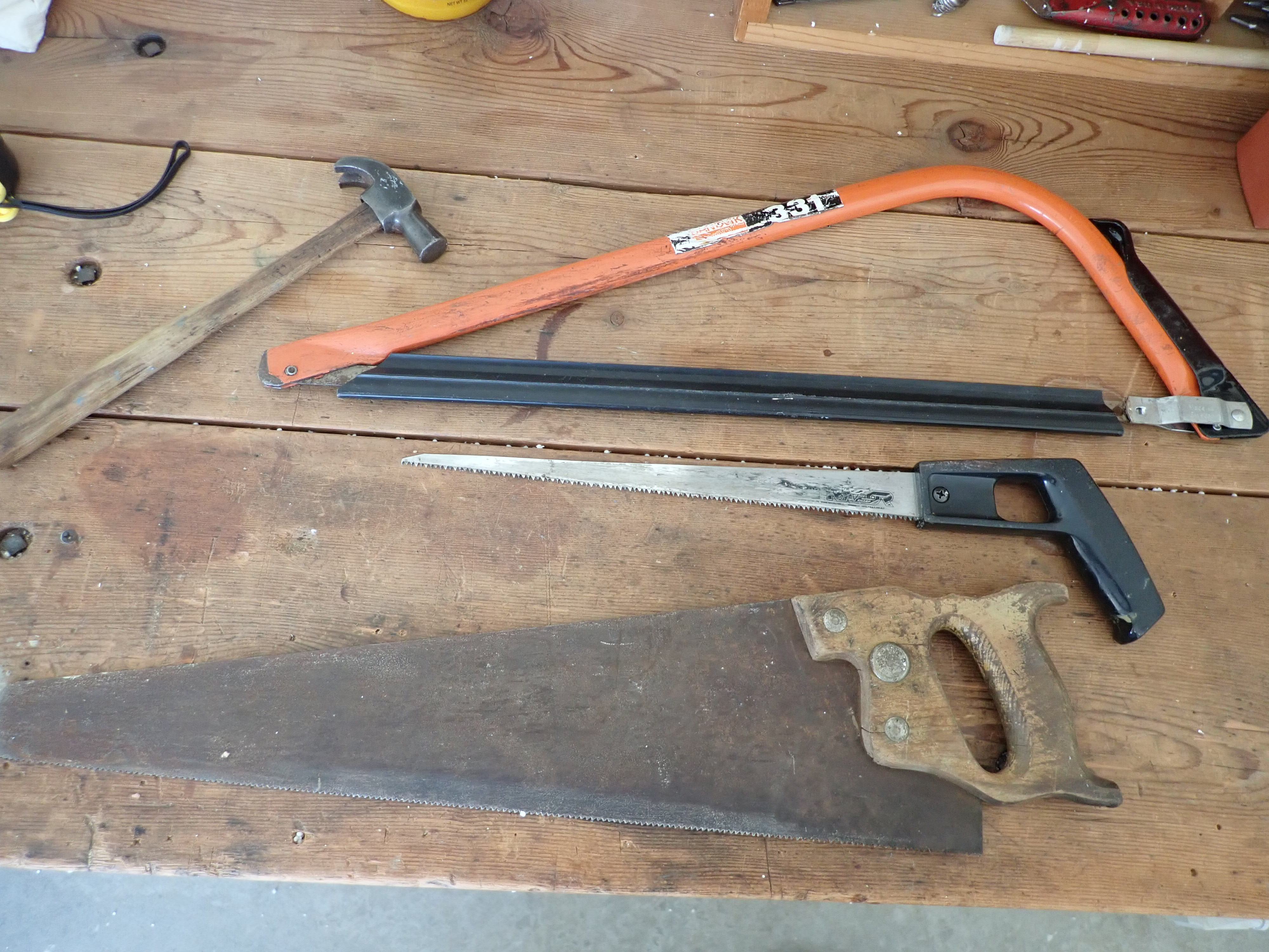 I believe I’ve been a tad bit creative in using materials on hand to organize the space. Some might call it penny-pinching; I call it being thoughtfully thrifty, economical, inventive. a relying on a smattering of old hand tools. Satisfying is the word that sums up today’s effort.
