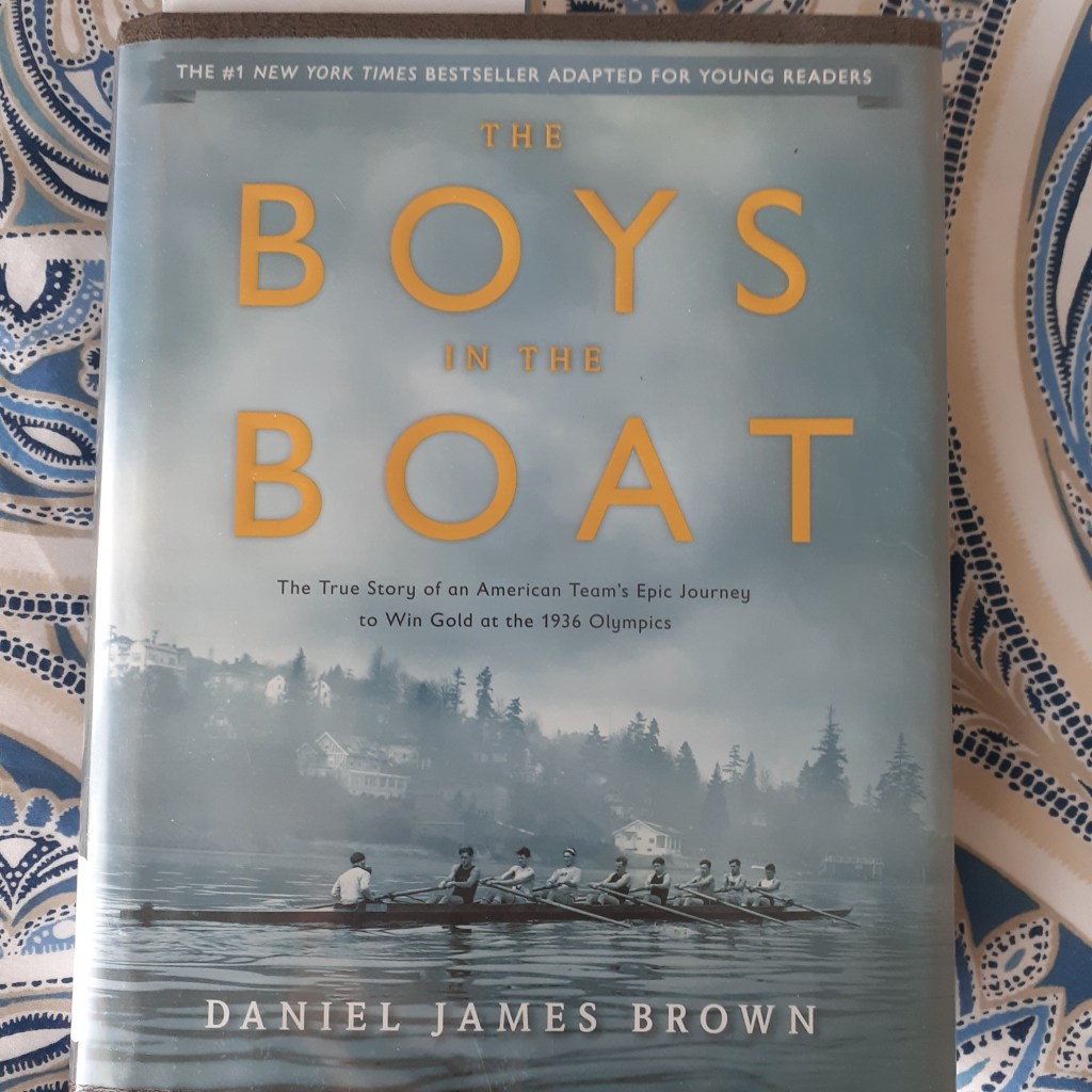 The Boys in the Boat, by Daniel James Brown, recounts the true story of this team’s unbeaten journey to win gold at the 1936 Olympics. The edition (Viking, Penguin, 2013, 2015) that was available at our library was adapted for young readers.