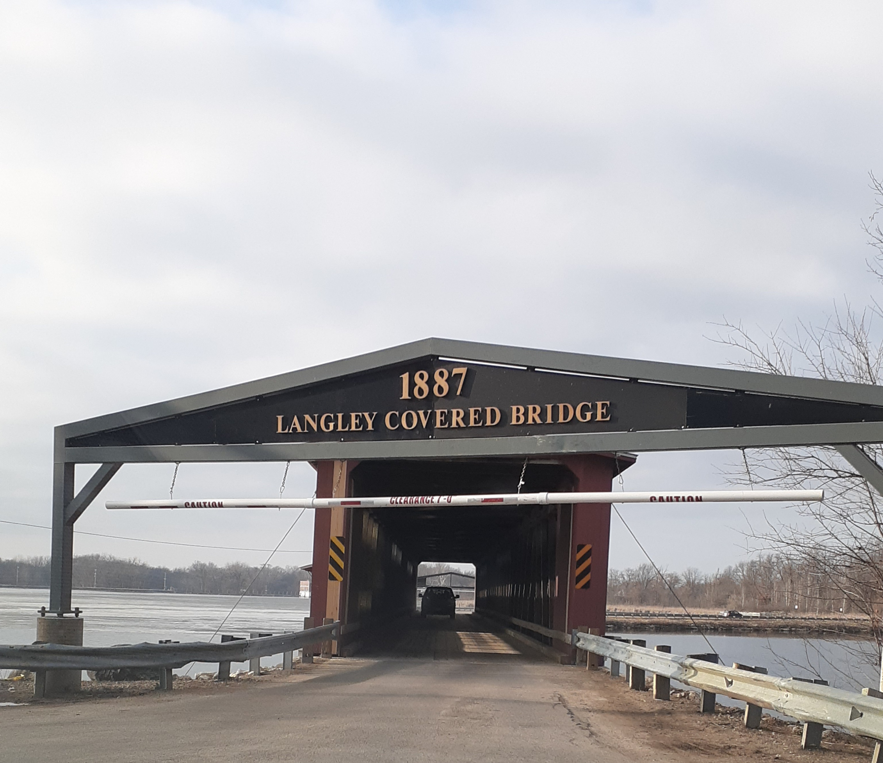 We had breakfast at the Hilltop Restaurant in Middlebury, took a walk on the Pumpkinvine Trail, and spent the afternoon with John and Jan watching a movie set in Cornwall at their home near Sturgis. That evening we had dinner at the Fisher Lake Inn near Three Rivers, Michigan. This bridge enroute over the St Joseph River was recently reopened after extensive repairs. I like the sign, “No Trucks. Your GPS is Wrong.”