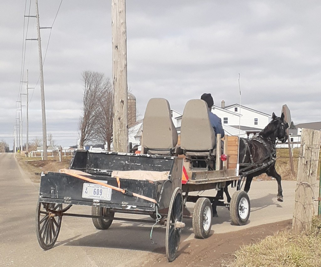 Spent time in LaGrange County with Gerald and Mary M., visited Marty and Mary’s sister Doris, played Canasta. Amish life in LaGrange County includes versions of slow but sure motion. We had breakfast at the Topeka Pizza Restaurant, a popular gathering place for Amish families. A serving of baked oatmeal with fruit hit the spot.