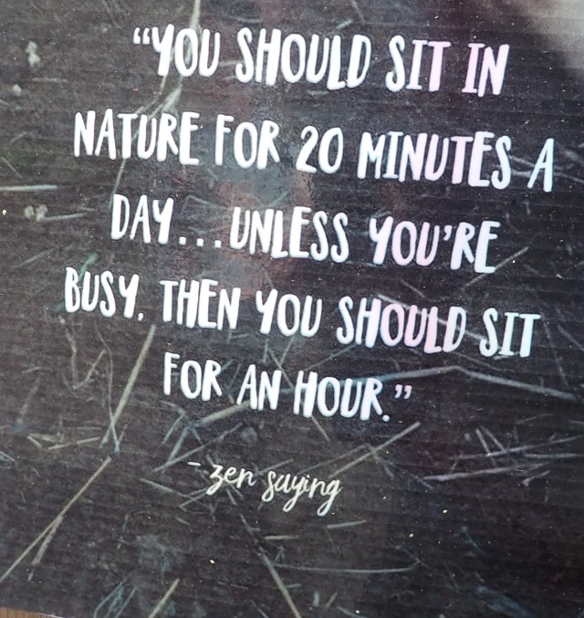 My niece Rachel has reminded me that I once talked about pausing in nature to look, listen and absorb the scene–rather than stop, snap a photo, and move on. Excellent reminder. I snapped the photo below last year here in Cornwall and did sit for a short time on an adjacent bench. I must learn to sit for 20 minutes or more and pay heed to nature around me. Thanks, Rachel.
