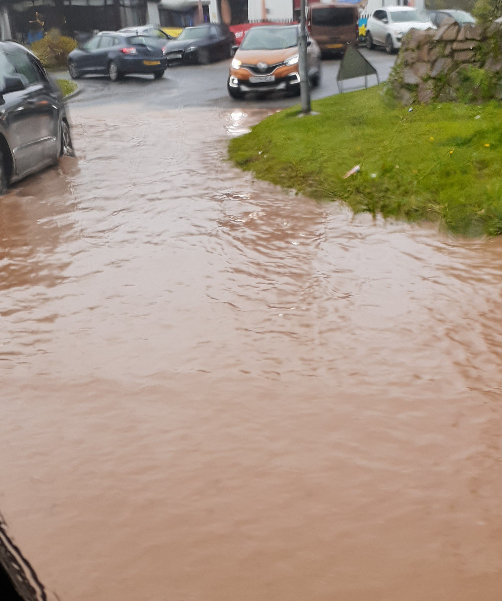 Tuesday. A trip with Ann to two farm markets for lunch and shopping redeemed a rainy day. The road into Hayle turned to river on the way home from Trevaskis Farmhouse Kitchen and Richards Farm Market.