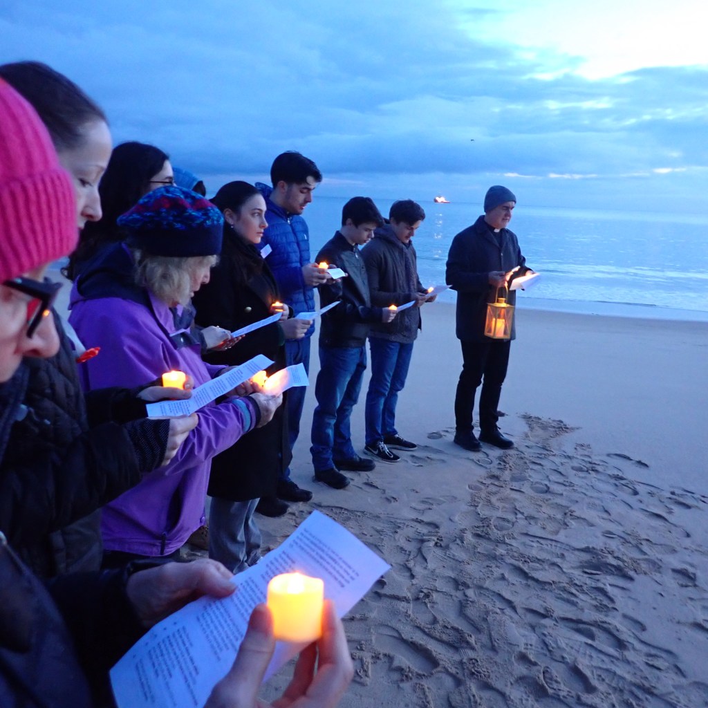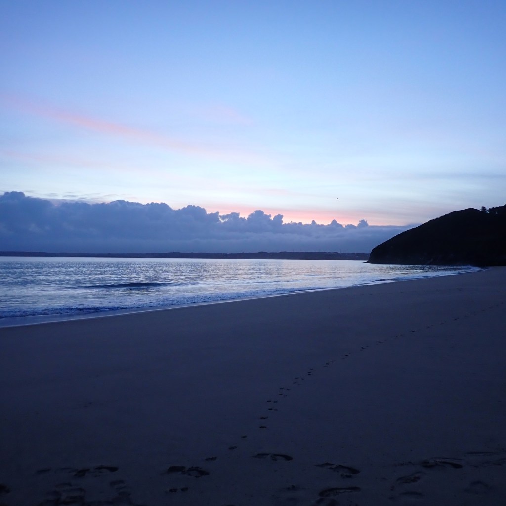 Nineteen people gathered for a 6:30 sunrise service on Carbis Bay beach. Clouds obscured the 6:59 rising sun, though the setting proved right for reflection. We had a brief liturgy, hymn and prayers, surrounded by the sounds of waves and birds. In the distance an individual walked into the bay for a swim, two dogs came to greet us, and a solitary gull stood at sand and wave edge as though ready to address us. Mike said the gull was more likely waiting for food. All creation’s waiting voices join the chorus. Christ is risen!