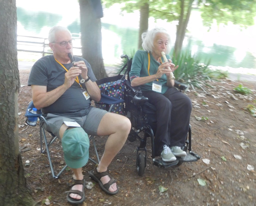 Presenters included campus retirees who are master gardeners, a landscape architect, musicians, and an apiarist. Presenters from off-campus included the city forester and other staff specialists, an urban biologist from the Indiana Department of Natural Resources, a leader from the Trail Marker Group of the Bodewadmi-Myaamia Trail (the Potawatomi-Miami trail that crosses Greencroft’s 175-acre campus), the resident environmental committee, and Greencroft Goshen Foundation.