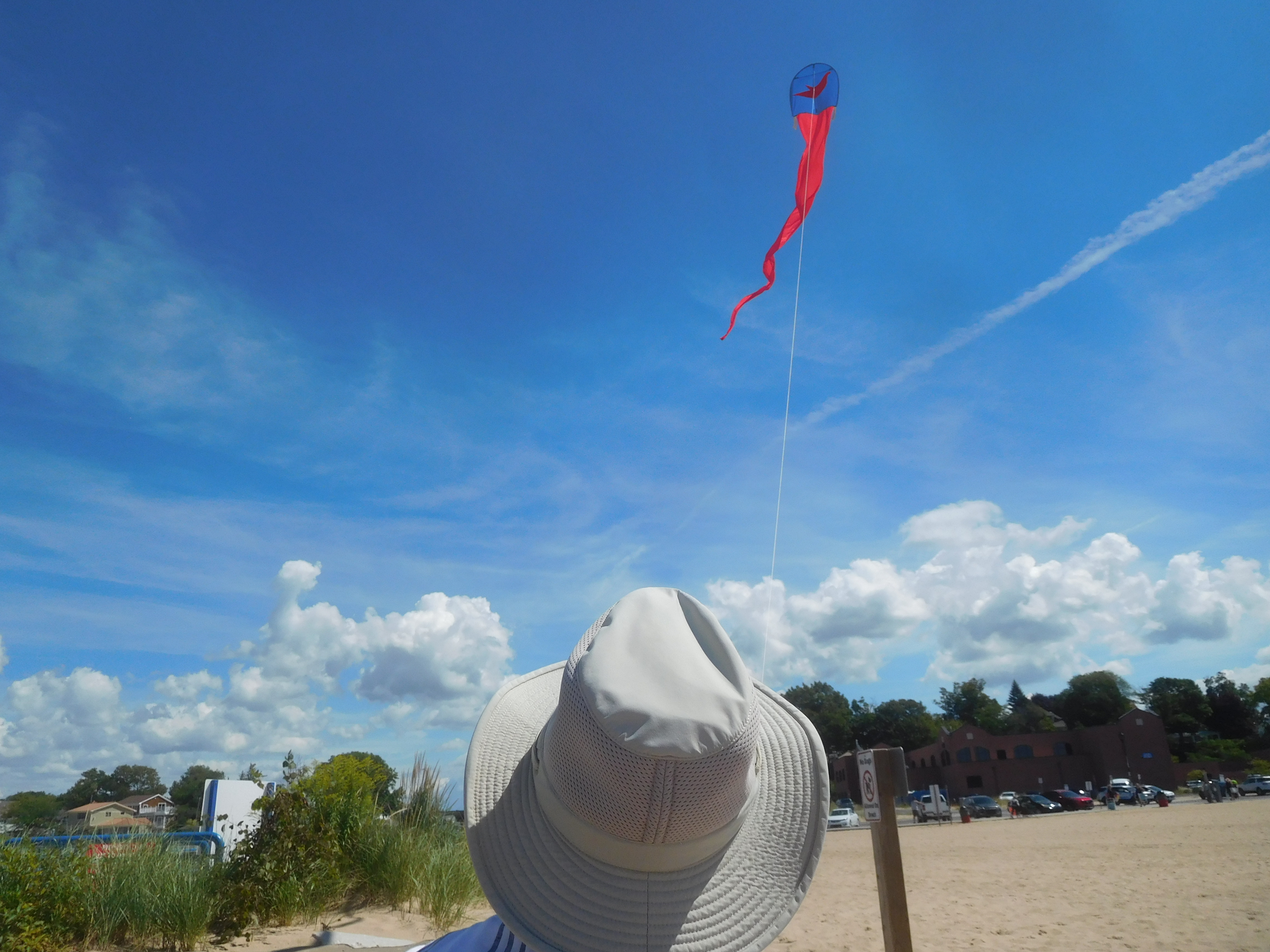 POST 28/2025 SOUTH HAVEN & PERRIN LAKE, MICHIGAN: “I’m going to fly my kite,” I told a barber in South Haven a few years ago when he asked me what I was going to do next. I did it again last week, not the haircut, just flew our fifty-year-old kite. Sprite by name.