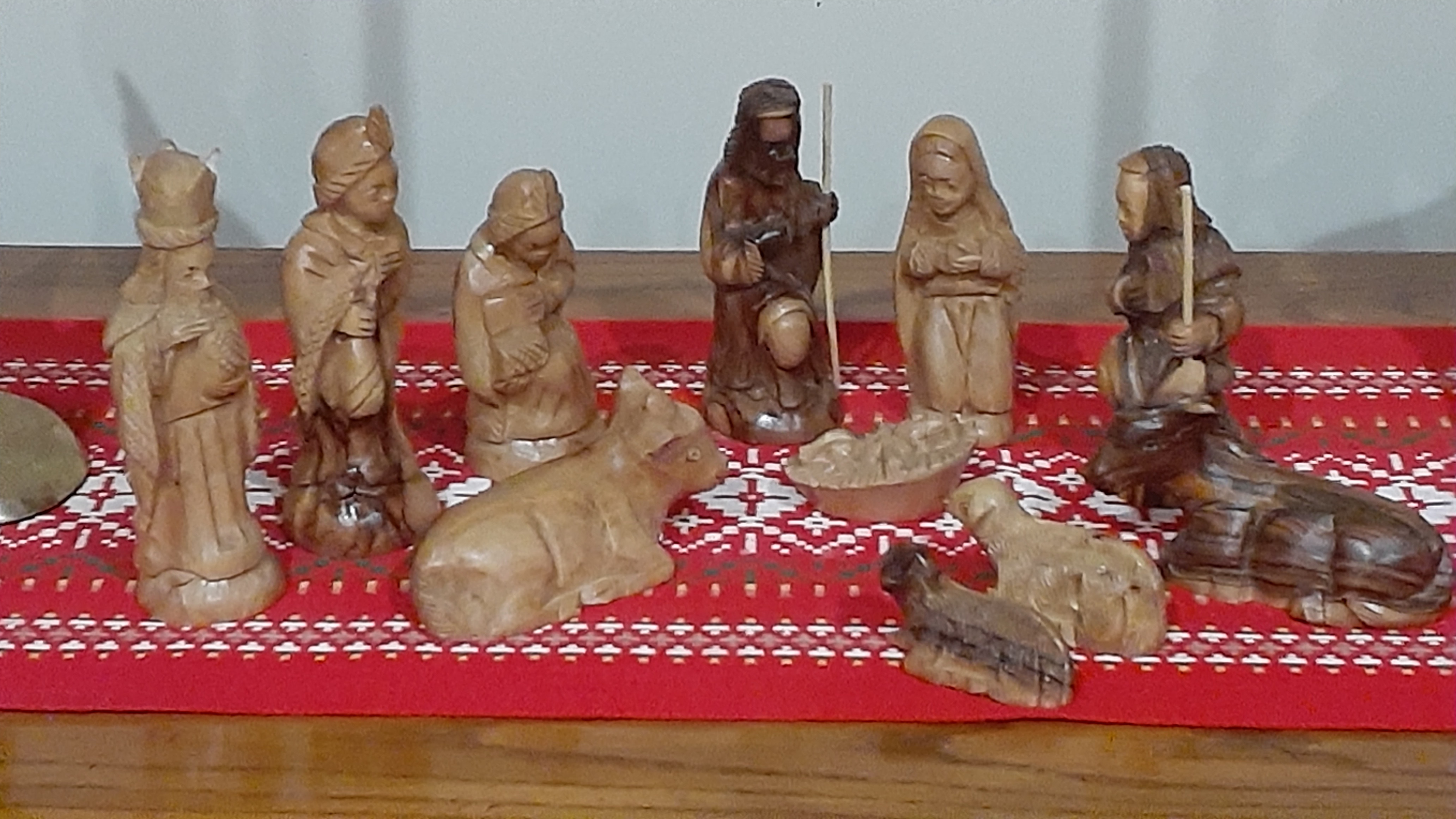 Olive-wood Crèche, gift from Ken & the late Kass Seitz